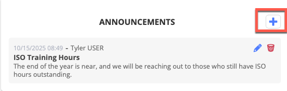Dashboard - Manage Announcements - User can post and delete announcements via the scheduling dashboard (required for creating, editing, or removing announcements visible to all users)