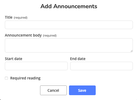 Remember that all users see the same announcements, so keep content professional and appropriate
