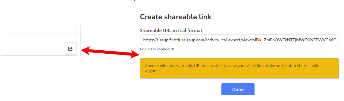 Generate a link that can be shared with others for integration with external calendar applications or calendar sharing with team members