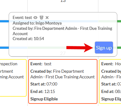 Look for the "Sign Up" button in the event popup (only appears for signup-eligible events)
