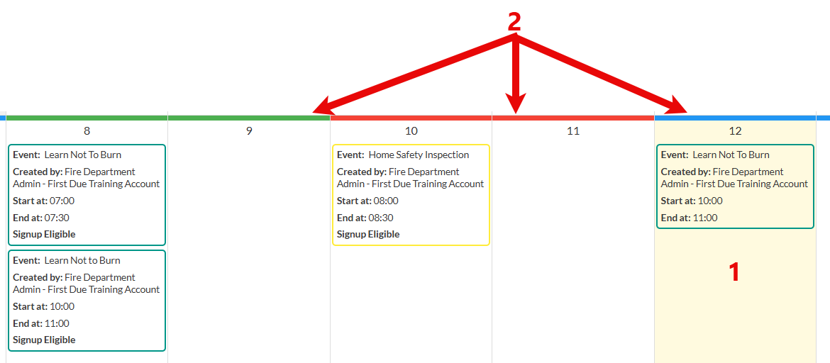 The Calendar Overview serves as a visual planning tool that displays activities and events from all First Due modules in a monthly calendar layout. This view is particularly valuable for department planning, shift management, and activity coordination as it provides a clear visual representation of departmental operations over time.