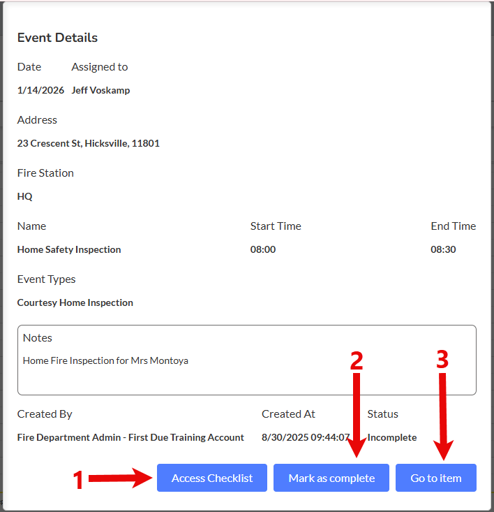 Access and complete any checklist associated with the event (if configured)
