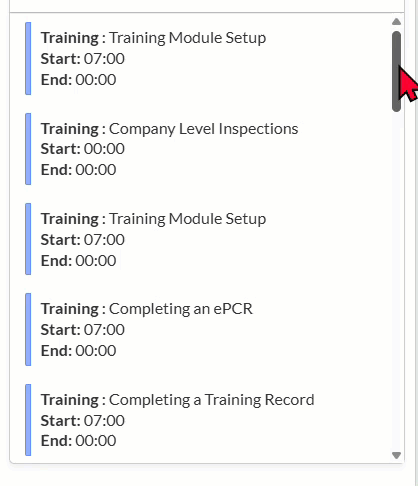 Q: Why do I only see completed asset checks but not scheduled ones in the daily view? A: This is normal system behavior. The Activities Log only displays completed asset checks and apparatus checks, not scheduled future checks. Scheduled checks would appear in other modules or calendar views until they're completed and then show in the Activities Log.