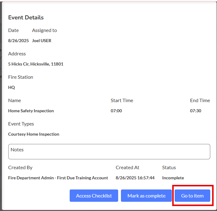 Click "Go to Item" in the event popup to navigate directly to the originating module of the Event or Activity