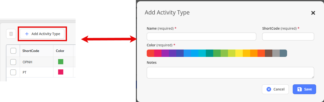 Click "Save" to create the new activity type and the new activity type will appear in the list and become available across all applicable modules