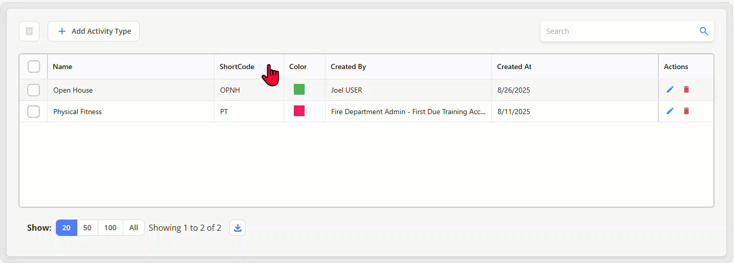 Q: Why are activity types managed in the Personnel module instead of Events and Activities? A: Activity types are shared across multiple modules (Events and Activities, Incident Documentation, and Training), so they're centrally managed in the Personnel module to ensure consistency. This prevents duplication and ensures that changes apply uniformly across all modules that use activity types.
