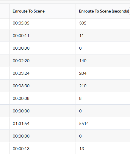 Fire and EMS agencies routinely analyze response times, scene times, and other critical time intervals for performance measurement, compliance reporting, and quality improvement initiatives. These calculations are essential for NEMSIS compliance, response time analysis, and operational benchmarking. Instead of manually creating Custom Columns for each report, First Due's Automatic Time Calculation Columns provide standardized calculations that automatically populate based on existing timestamp data in your records.