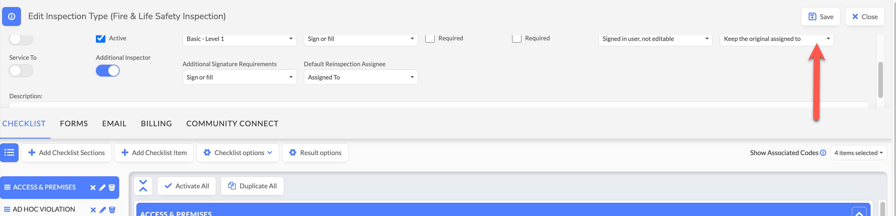 Inspection Type Configuration: Administrator access to modify inspection type settings