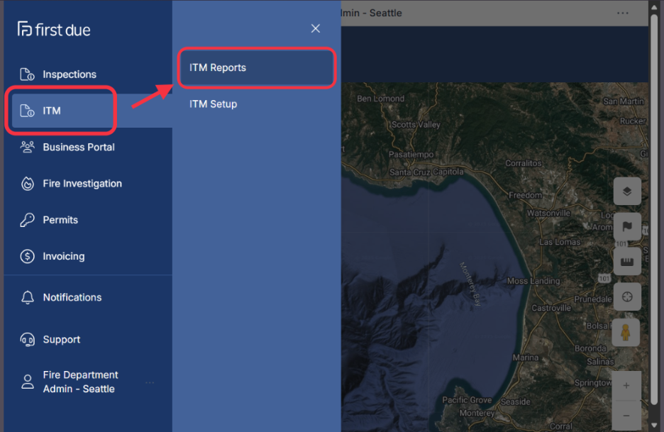2. Click on ITM. and Select ITM Reports from the submenu.