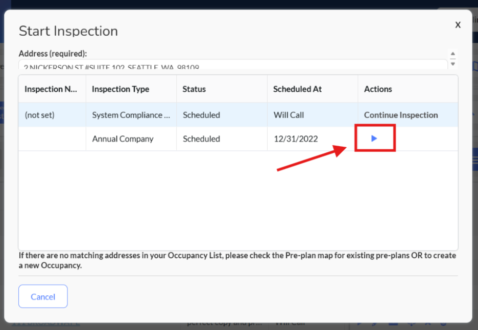 Ensure you started the inspection by clicking the Play button from an inspection that was generated from an ITM report