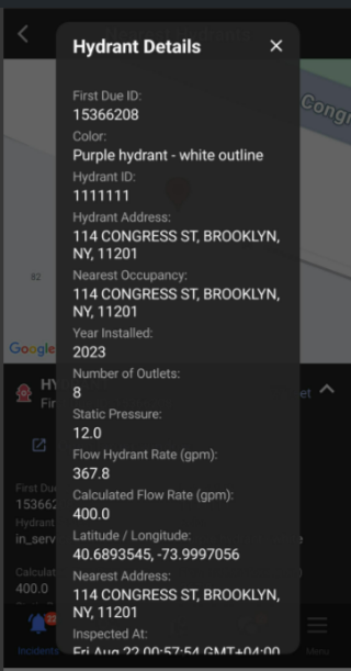 Enhanced Hydrant Details Display