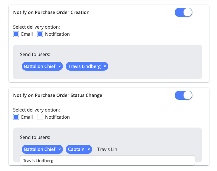 To enable a notification, click the toggle switch. When enabled, the toggle will turn blue.