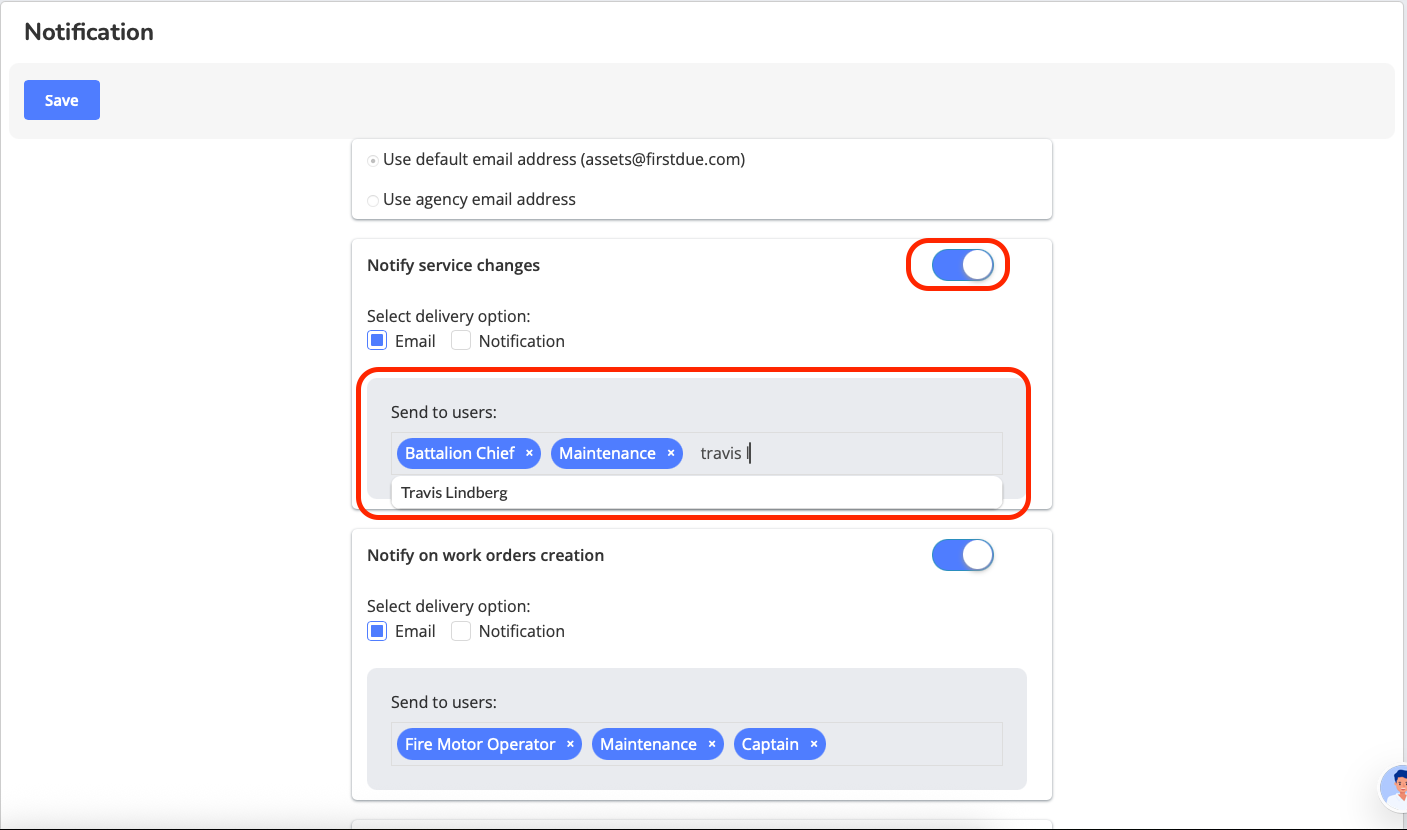 When finished configuring all desired notifications, click Save at the top of the page to apply your changes.