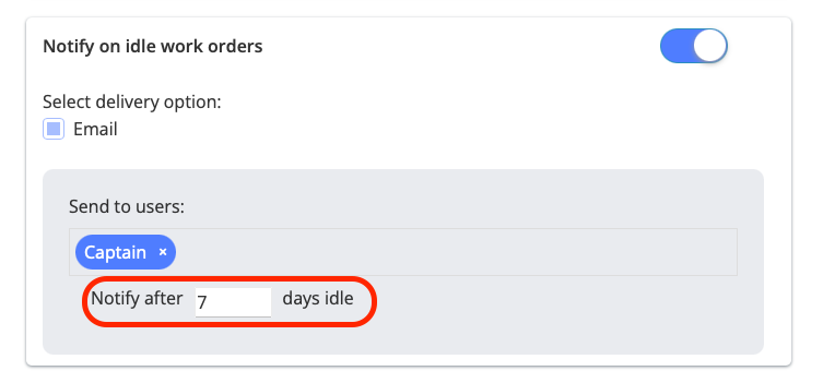 Review and adjust idle work order thresholds based on your agency's typical response times