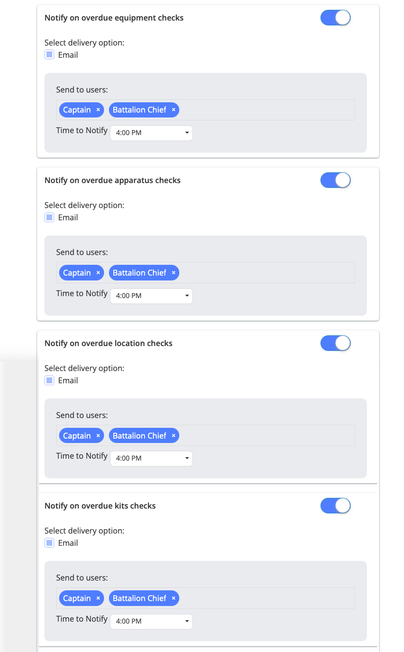 Notifying supervisors of overdue vehicle inspections or equipment checks