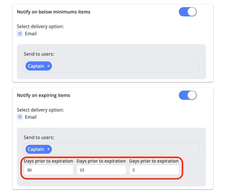 Configure up to three separate reminder notifications at different intervals before the expiration date.