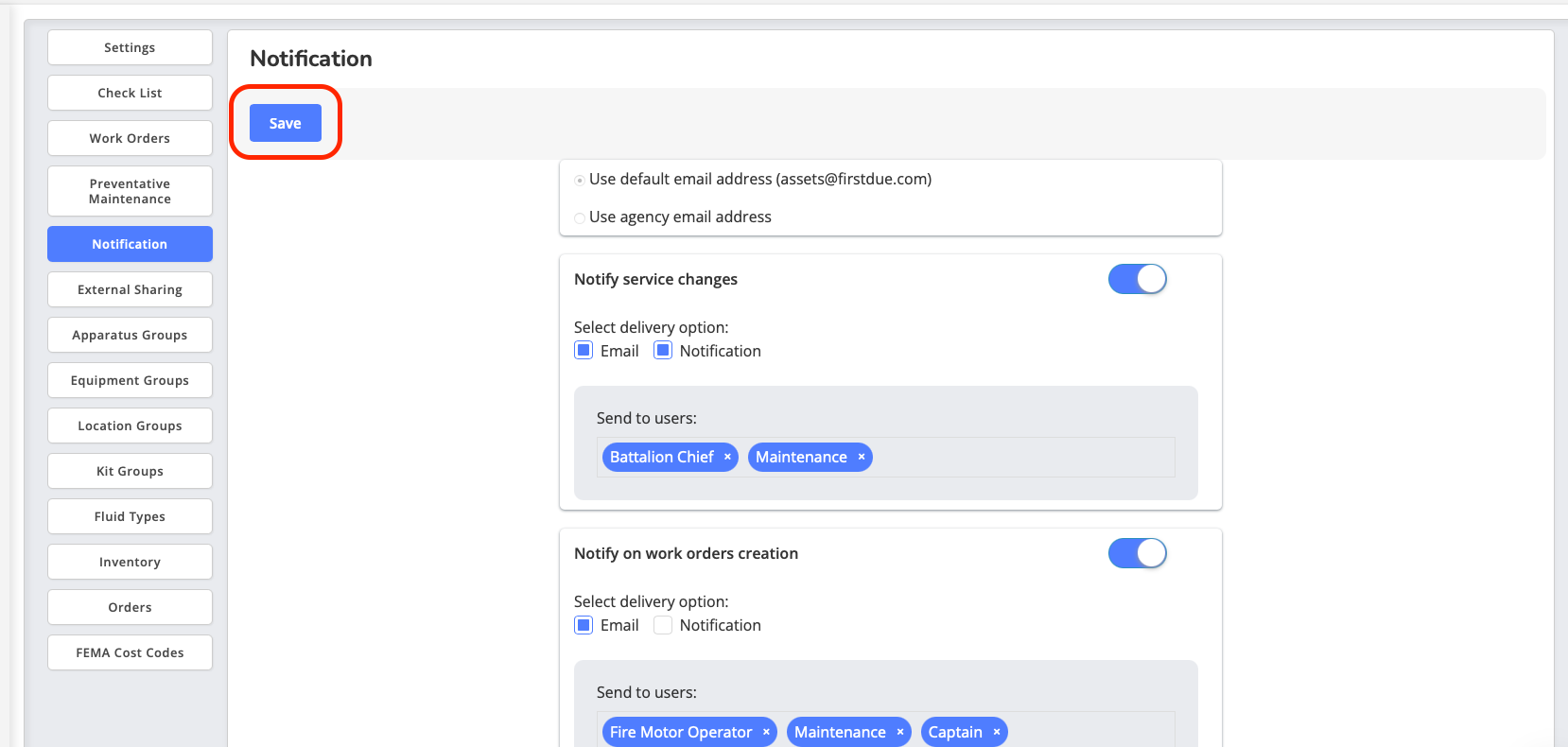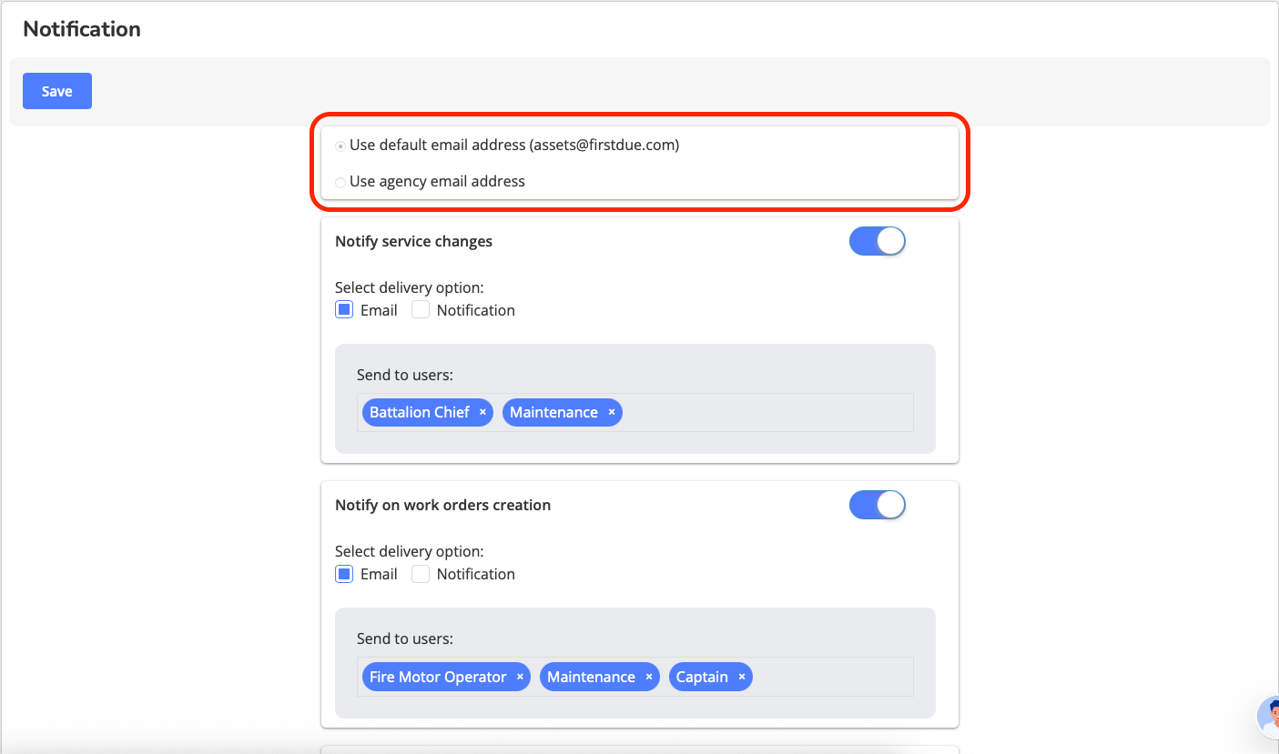 Note that notifications will be sent from the email address assets@firstdue.com.