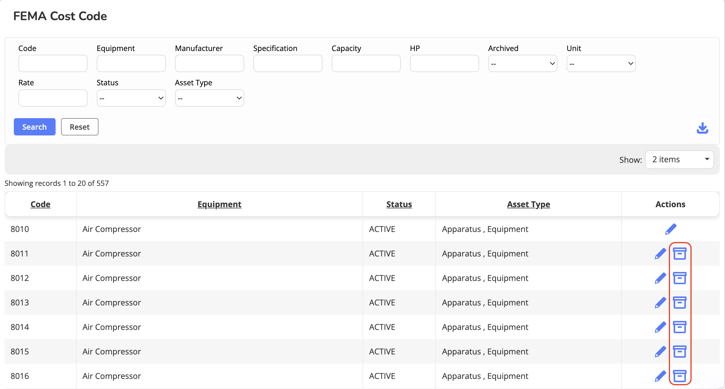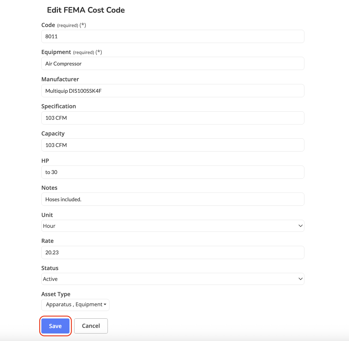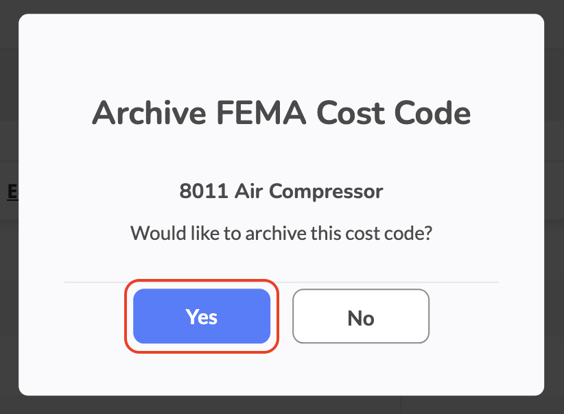 Archived cost codes will not appear in the dropdown when assigning FEMA Cost Codes to assets.Keep only relevant FEMA Cost Codes active to reduce selection errors during Equipment/Apparatus setup.