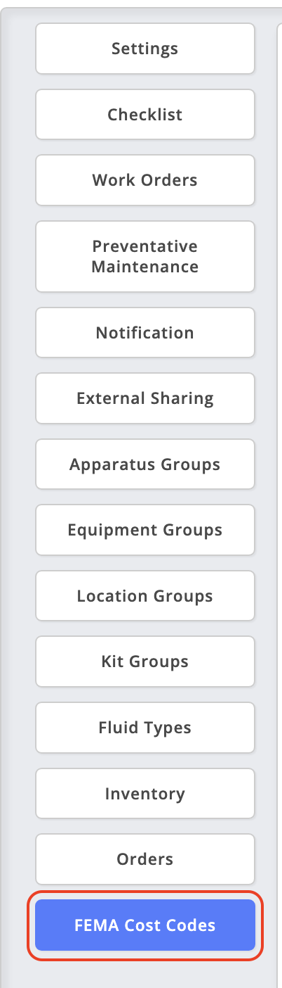 FEMA Cost Codes help standardize cost tracking and reporting when an incident is eligible for reimbursement. Keeping these codes up to date ensures equipment and apparatus can be assigned the appropriate FEMA Cost Code during specification and inventory workflows, reducing manual clean-up during after-action reporting.