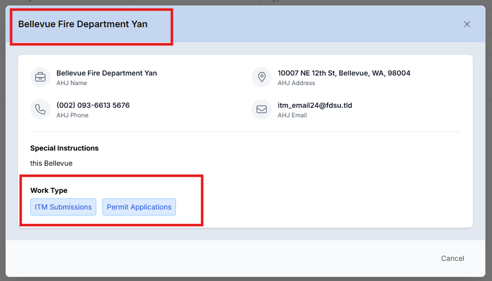 - AHJ Name - Official fire department name
