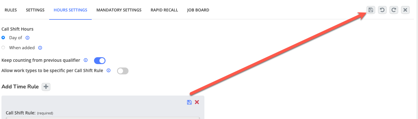 In the Hours Settings panel, review the "Call Shift Hours" section. You have two options: