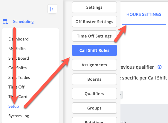 Click on Call Shift Rules in the Setup options.
