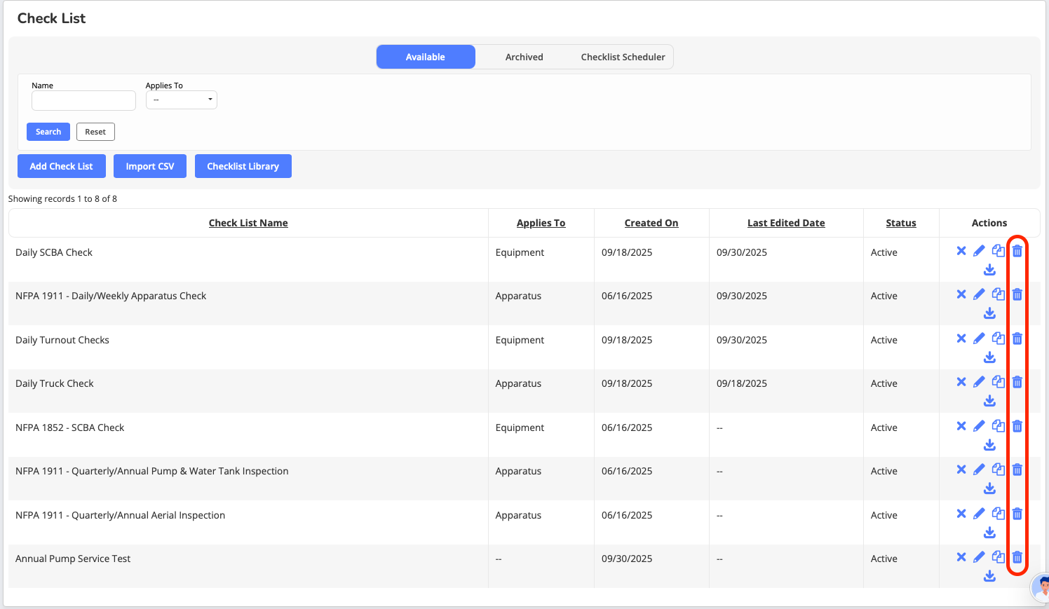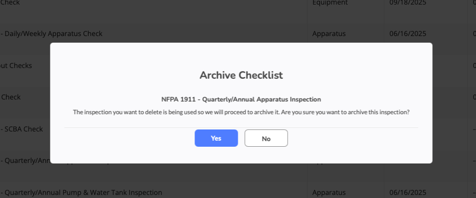 First Due's intelligent delete/archive system automatically determines the appropriate action based on checklist usage: