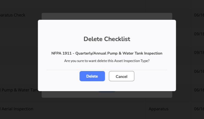 The purpose of this feature is to enable module managers to remove checklists from the First Due Assets module that are no longer needed, while preserving historical data when necessary. This ensures your checklist library remains current and organized without losing valuable completed checklist records.