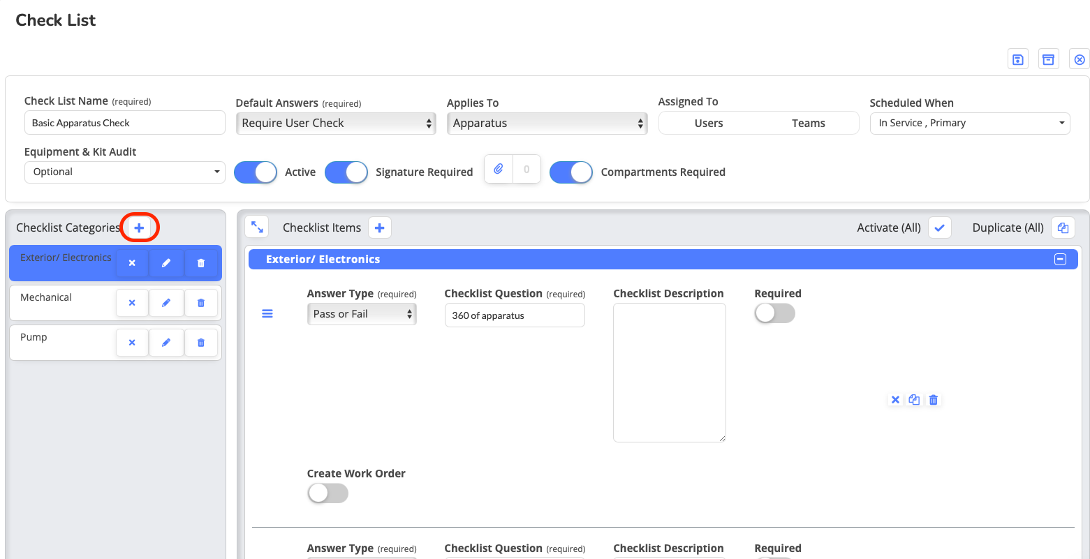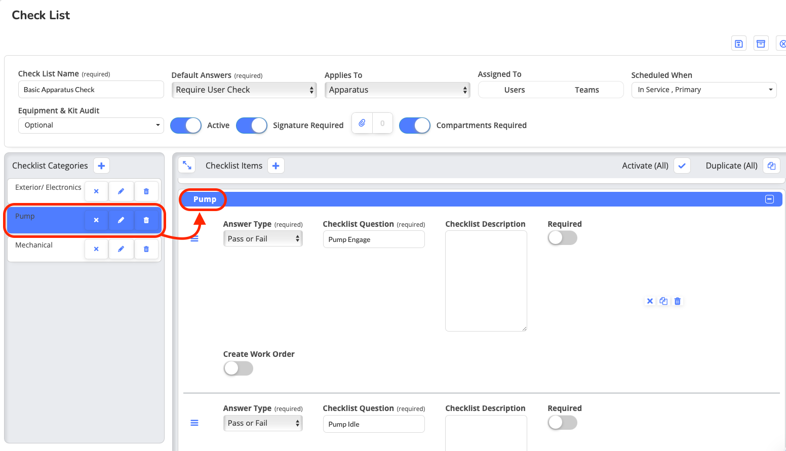 This article guides module managers through the process of editing existing checklists in the First Due Assets module. Editing checklists allows administrators to maintain accurate, up-to-date inspection criteria for their agency's assets by modifying categories, adding or removing checklist items, and reorganizing content to match evolving operational requirements and compliance standards.