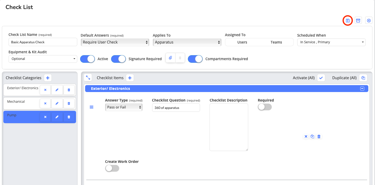 Asset checklists in First Due serve as standardized inspection templates that ensure consistent evaluation of equipment, vehicles, and facilities across your agency. As operational needs change, regulatory requirements evolve, or equipment specifications are updated, administrators need the ability to modify existing checklists without creating entirely new templates from scratch.