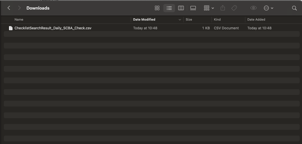 The .CSV file will be automatically downloaded to your default downloads folder. The file will be named according to your checklist title (e.g., "Apparatus-Daily-Inspection.csv"). You can now open this file in Excel, Google Sheets, or any .CSV-compatible application.