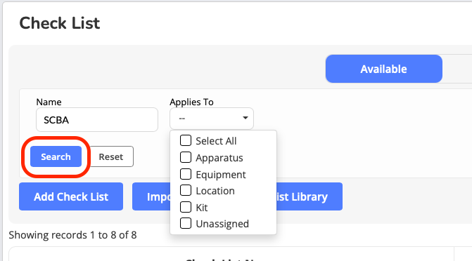 First Due's checklist system provides structured inspection and verification workflows for assets, apparatus, facilities, and equipment. Checklists ensure consistent completion of routine tasks and compliance requirements. The export functionality converts your checklist structure—including all questions, response types, and configurations—into a universally readable CSV format.