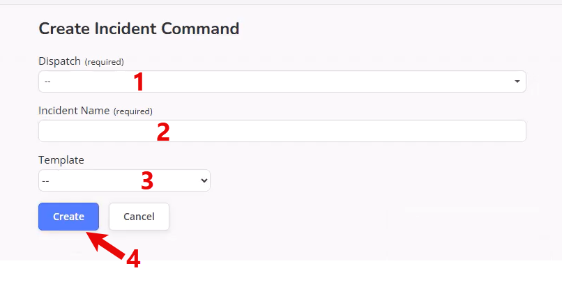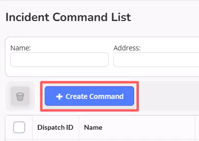 4. Select "Create" to finalize the new incident command and he new incident command will now appear in your Incident Command List.