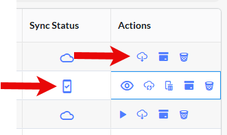 To download an incident command for offline access, select the cloud icon next to the incident. The sync status will change from a cloud icon to a mobile device with a checkmark, indicating successful download to local cache.