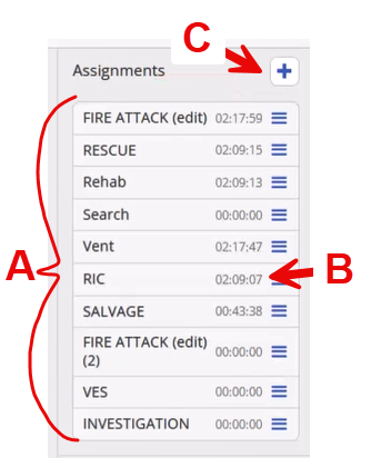 A: Assignment timers begin running when the assignment is created and track elapsed time for accountability purposes. Timers can be reset individually as needed when crews are reassigned or operational objectives change.