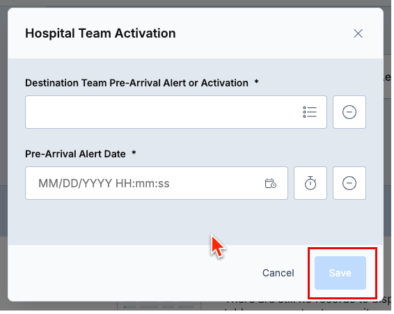 Pre-Arrival Alert Date* - Enter the Date/Time EMS alerted, notified, or activated the destination healthcare facility prior to EMS arrival