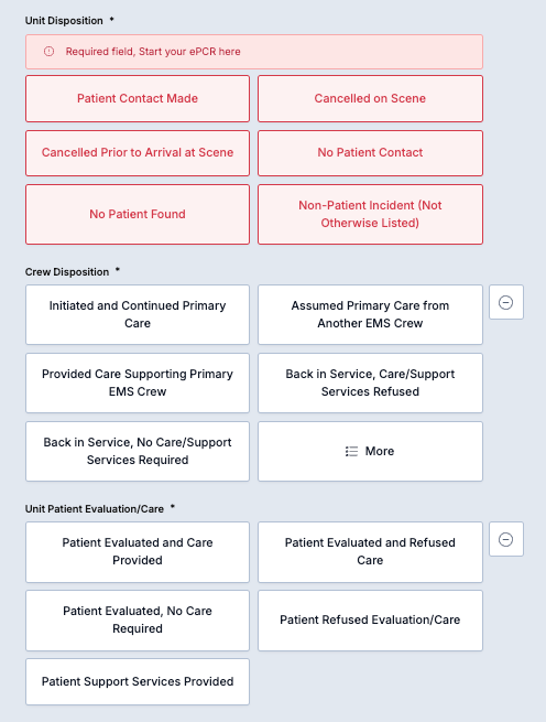 Crew Disposition - Select how care was provided (Initiated, Assumed from another crew, etc.)