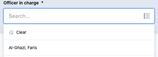 Q: The Officer in Charge dropdown is empty or missing personnel. How do I fix this?