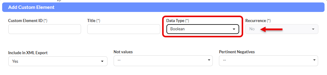 Note: When selecting Boolean, the Recurrence defaults to "No" and becomes non-selectable.