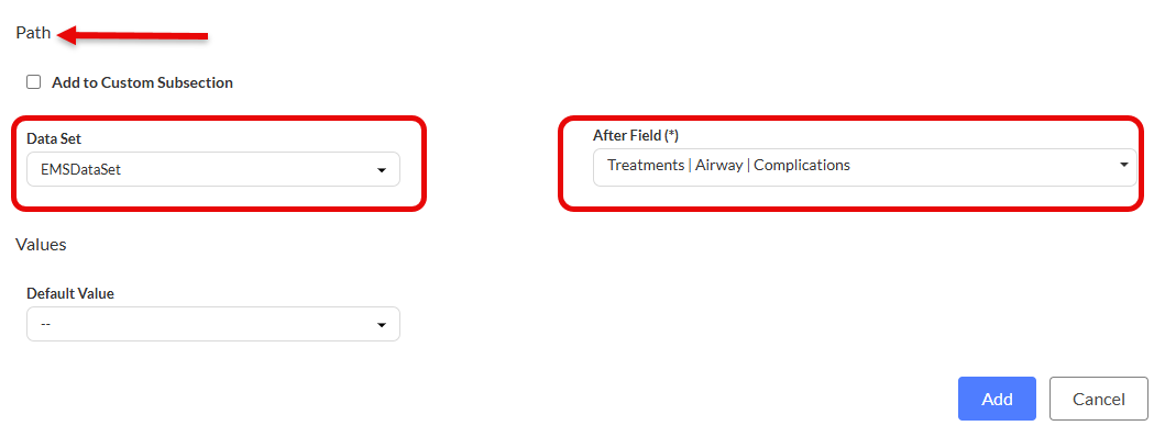Q: Question appears in wrong location within ePCR A: Review the After Field setting or Custom Subsection placement. Modify the Path configuration to position the question correctly.