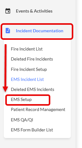 Access the EMS Setup located in the Incident Documentation module from your First Due administrative interface.