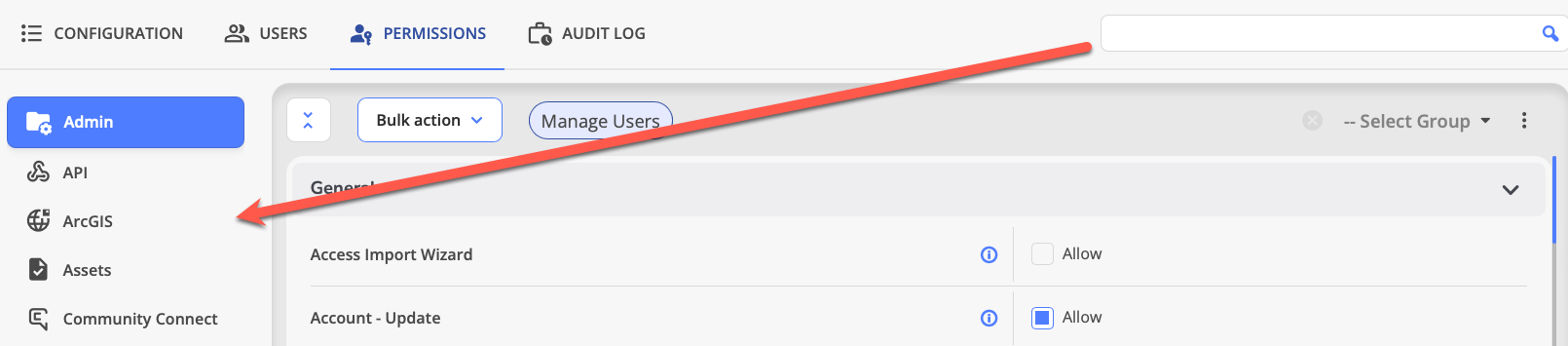On the Permissions tab, you can search for a particular permission using the search function, or click the Module that the permission would affect to filter permissions by functional area.