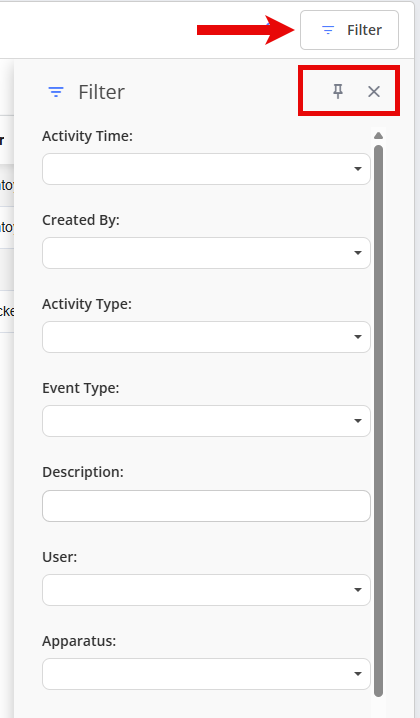 Keep the filter window open on screen for easy access by selecting the Thumbtack Icon