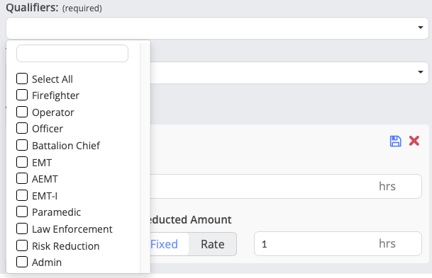 A: Yes. You can create multiple rules for the same qualifier, each targeting different time off types. For example, Battalion A might have one rule for vacation (deduct by shifts) and another for sick leave (deduct by hours).
