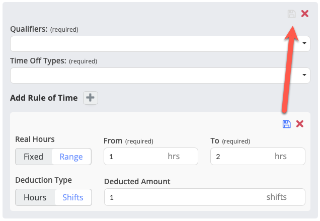 Click on the Save button in the Rule of Time section to save the deduction parameters.