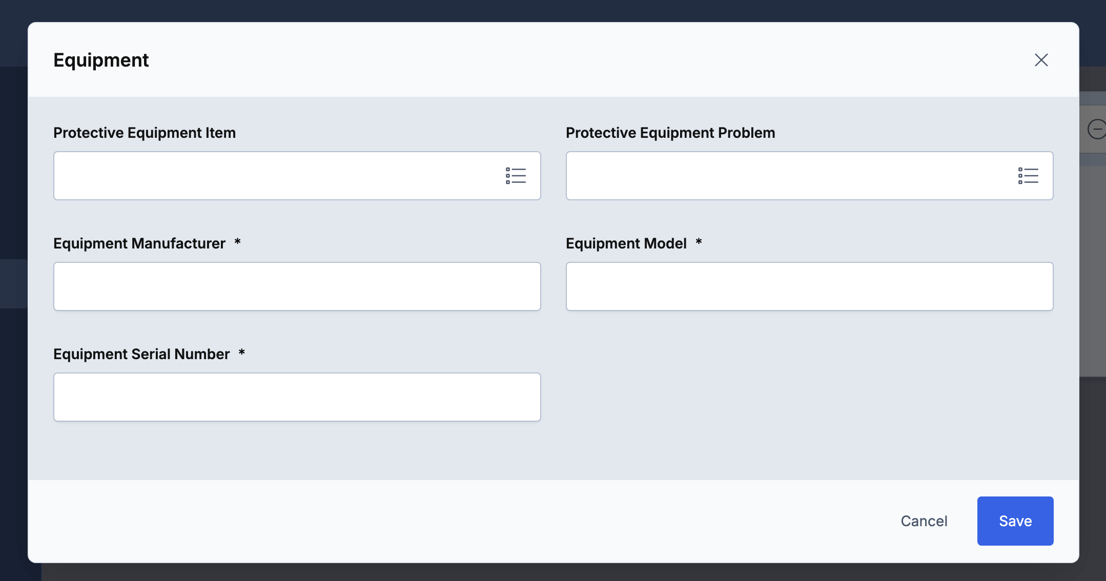 Q: What if PPE equipment failed or was compromised during the incident? A: Activate the PPE toggle and document all equipment details, specifically noting equipment failure or compromise in the appropriate fields. This information is critical for safety analysis.