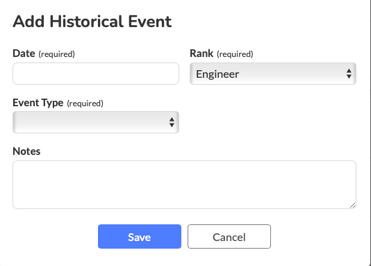Employment History serves as a centralized repository for all personnel-related changes and events throughout an employee's tenure. The system automatically captures assignment updates when shifts are created on the Shift Board and rotation updates when scheduling changes occur. Additionally, supervisors can manually add historical events such as promotions, disciplinary actions, training completions, commendations, or other significant career moments. This comprehensive tracking supports performance reviews, career development planning, compliance documentation, and provides valuable historical context for personnel decisions.