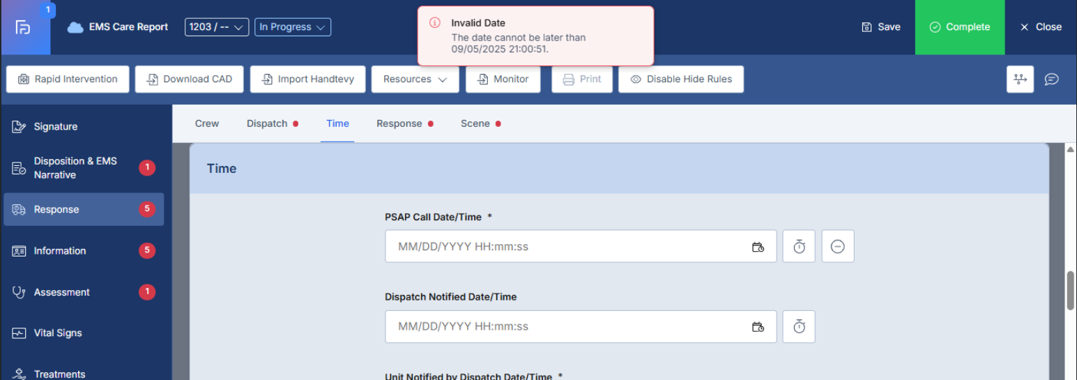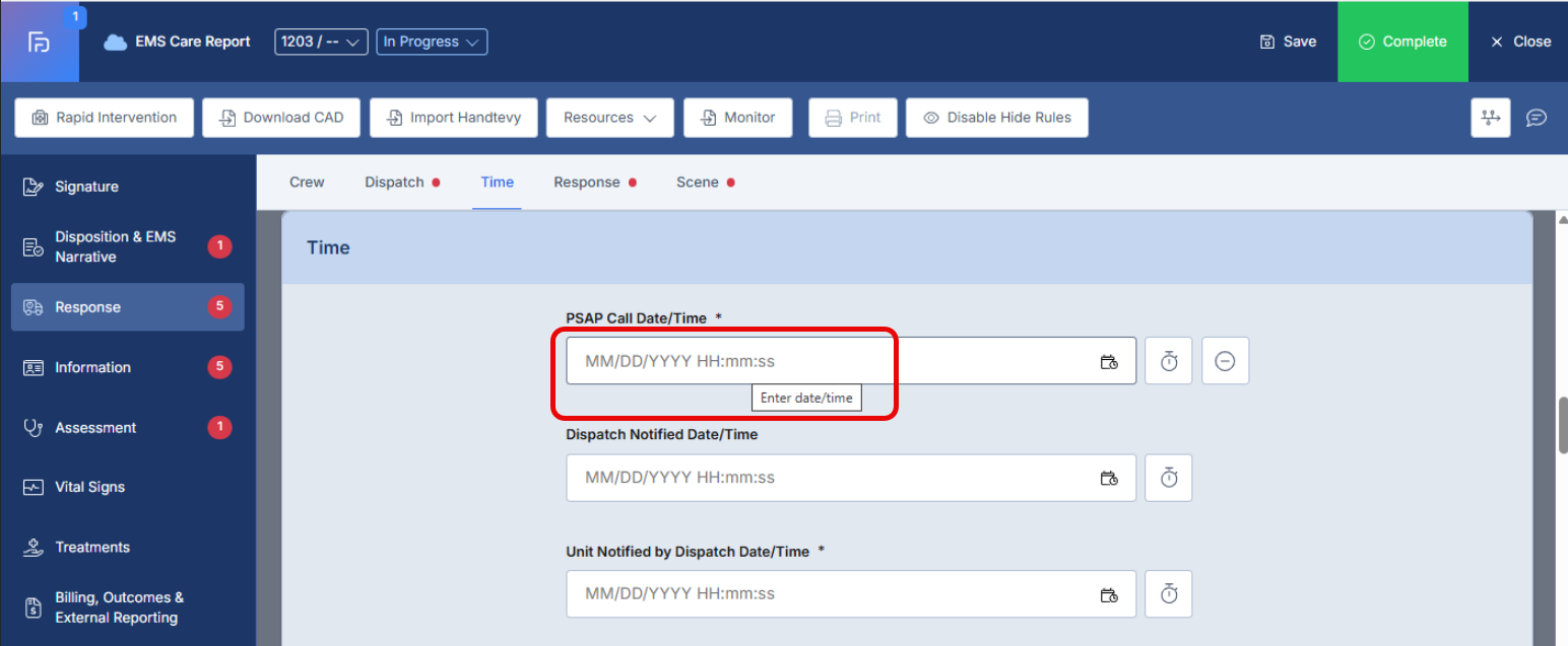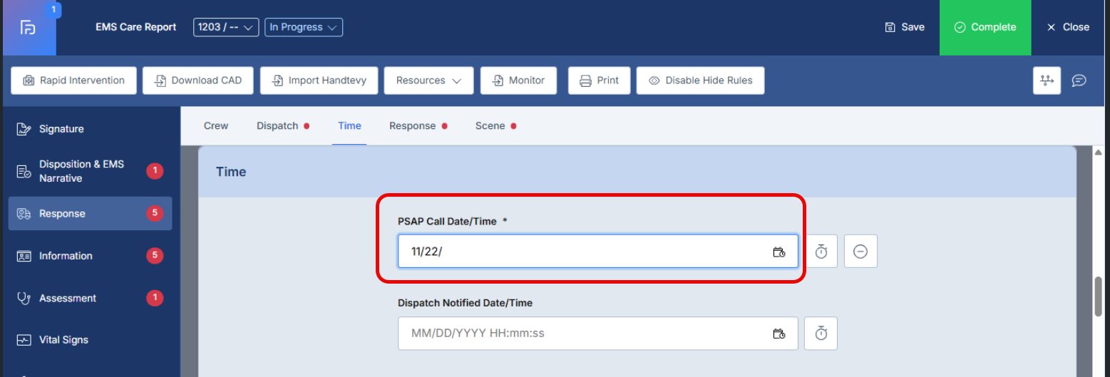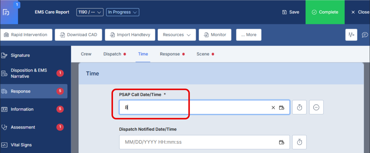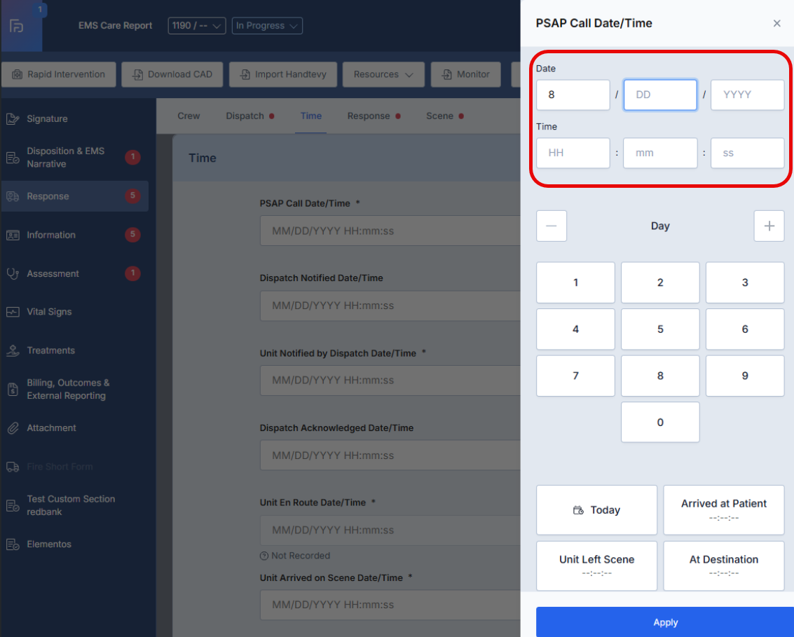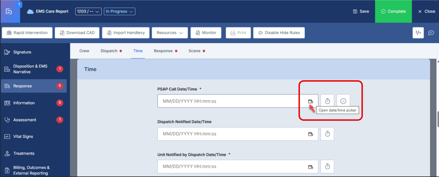 - This article explains the enhanced Date/Time field functionality in the ePCR system, which now provides both direct keyboard input capabilities and calendar picker options to accommodate different user preferences and improve data entry efficiency.