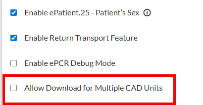 Configure Allow Download for Multiple CAD Units by enabling the feature and selecting from two options: