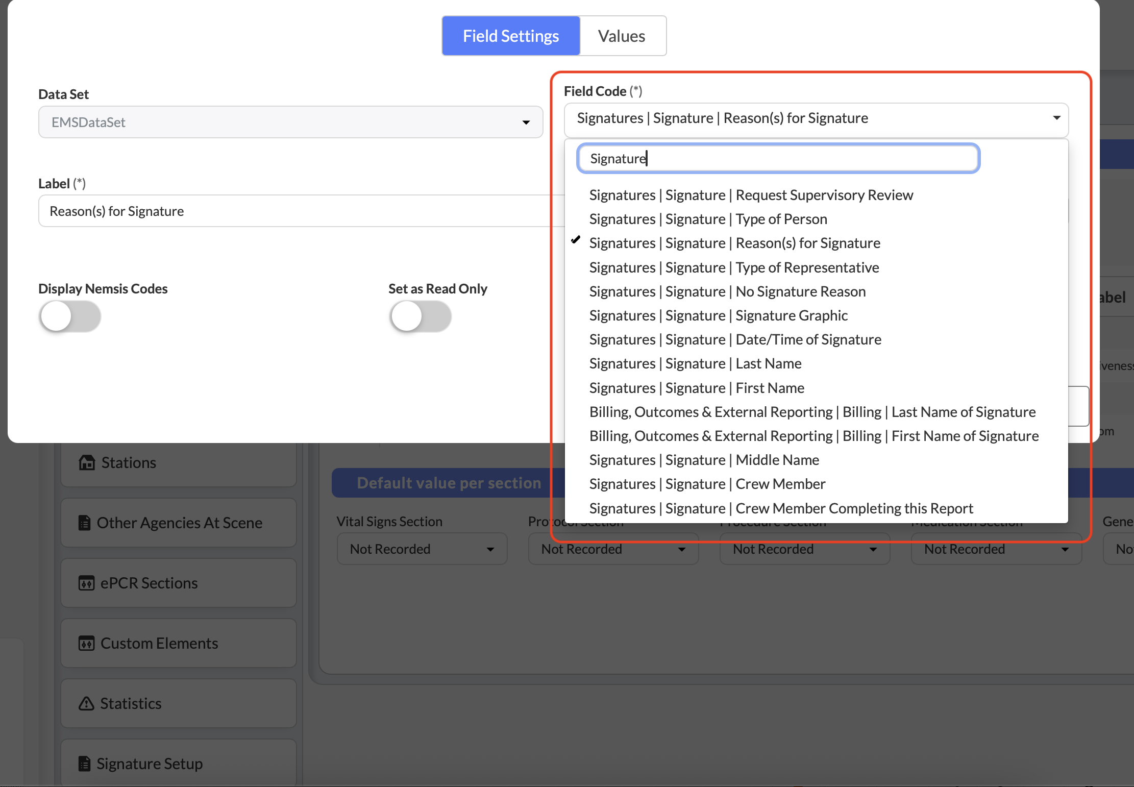 Ensure all signature configurations align with NEMSIS reporting requirements